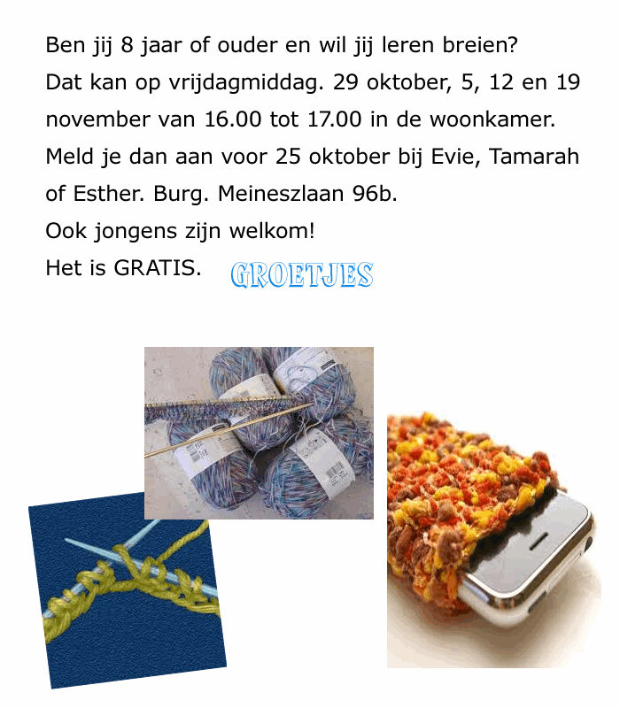 Gastvrouwen de Aisha's; iedere maandag, dinsdag, donderdag en vrijdag: Koffie, thee en gezelligheid bij de gastvrouwen 13.30 - 17.00 uur. Voor en door alle vrouwen in de buurt.