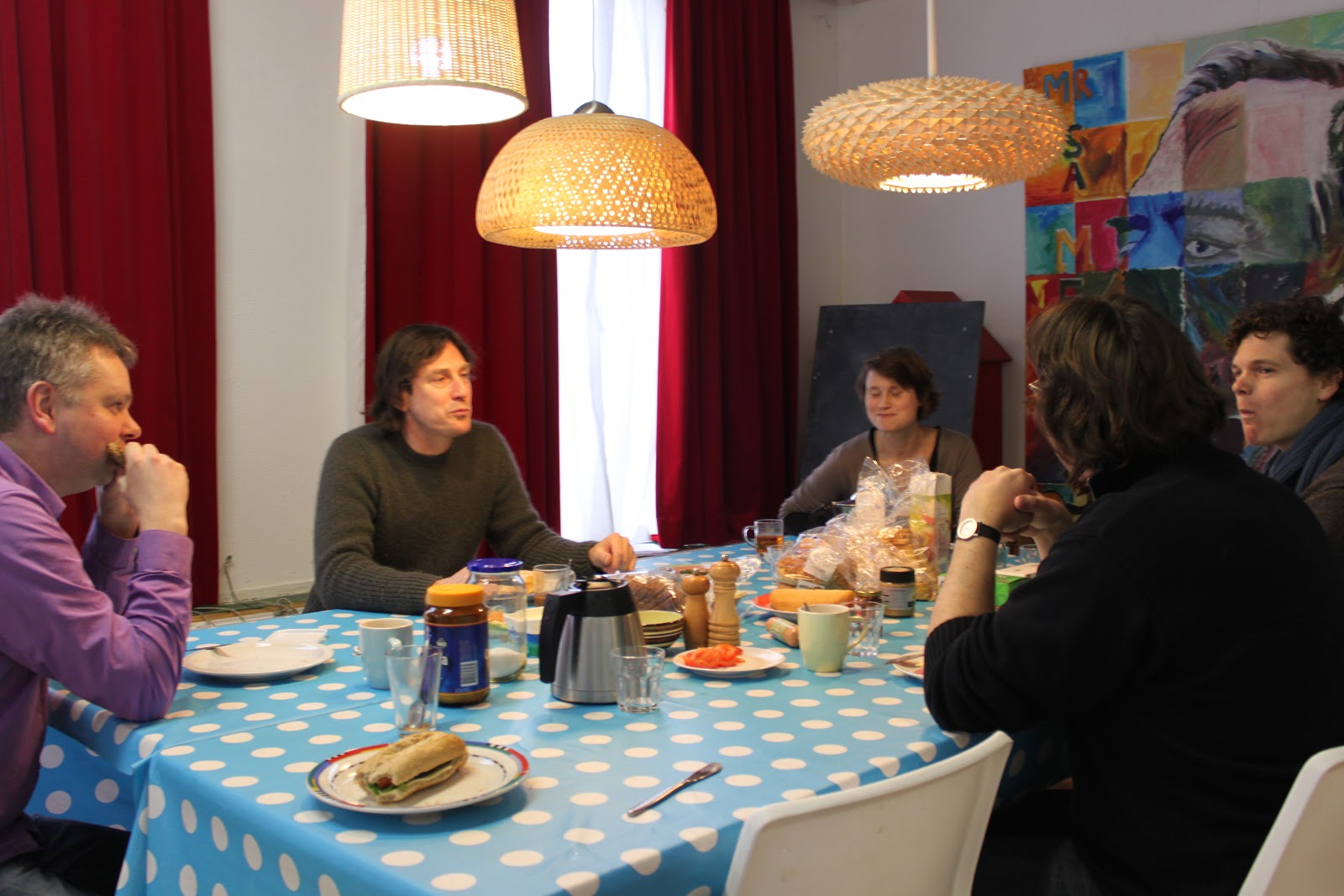 Op vrijdag 4 februari schoven er zes ondernemers aan voor een lunch in de woonkamer. Er was genoeg te bespreken: duurzame projecten, films, architectuur, notebookhoezen… Het was duidelijk dat er veel gebeurt op en om de Meineszlaan. En eronder. Ik snap nu eindelijk een beetje hoe het rioleringssysteem in elkaar zit!
