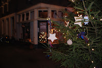 Na een gezellige uitslaapfilm is de Buurtkerstboom weer versierd door de kinderen. Buurman Maarten nam de lastige klus op zich om de lampjes in de zeer hoge boom te hangen.