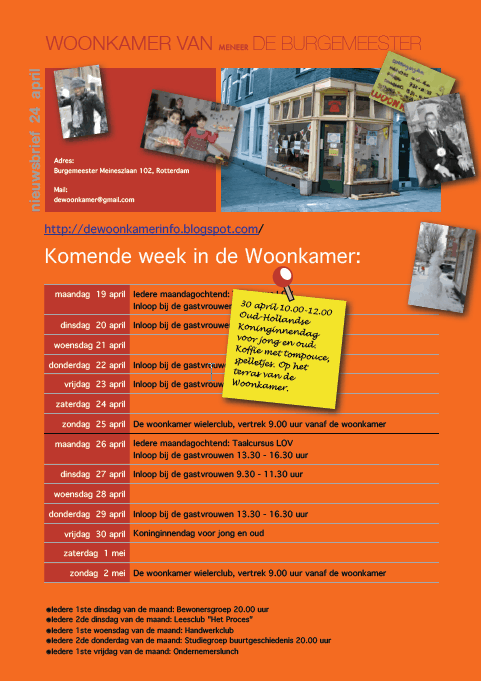 Laat weten of je komt dan zorgen wij voor het eten (aanmelden via: dewoonkamer@gmail.com).